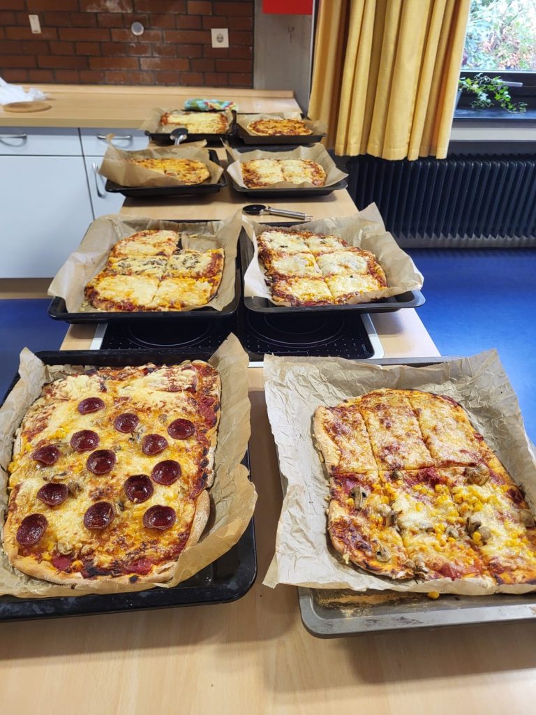 Gemeinsam bereiteten die Teilnehmenden ein dreigängiges Menü zu: einen frischen Salat als Vorspeise, eine selbstgemachte Pizza als Hauptgang und einen Cookietraum mit Weintrauben als Dessert. Schülerinnen, Schüler und Gäste arbeiteten Hand in Hand und brachten ihre Ideen und Erfahrungen ein.